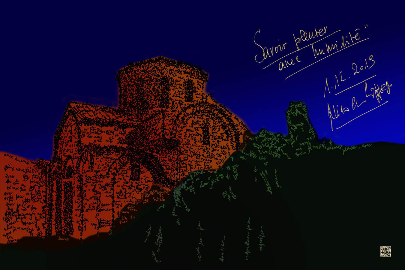 Savoir pleurer avec humilité Poème calligramme de Nicole Coppey