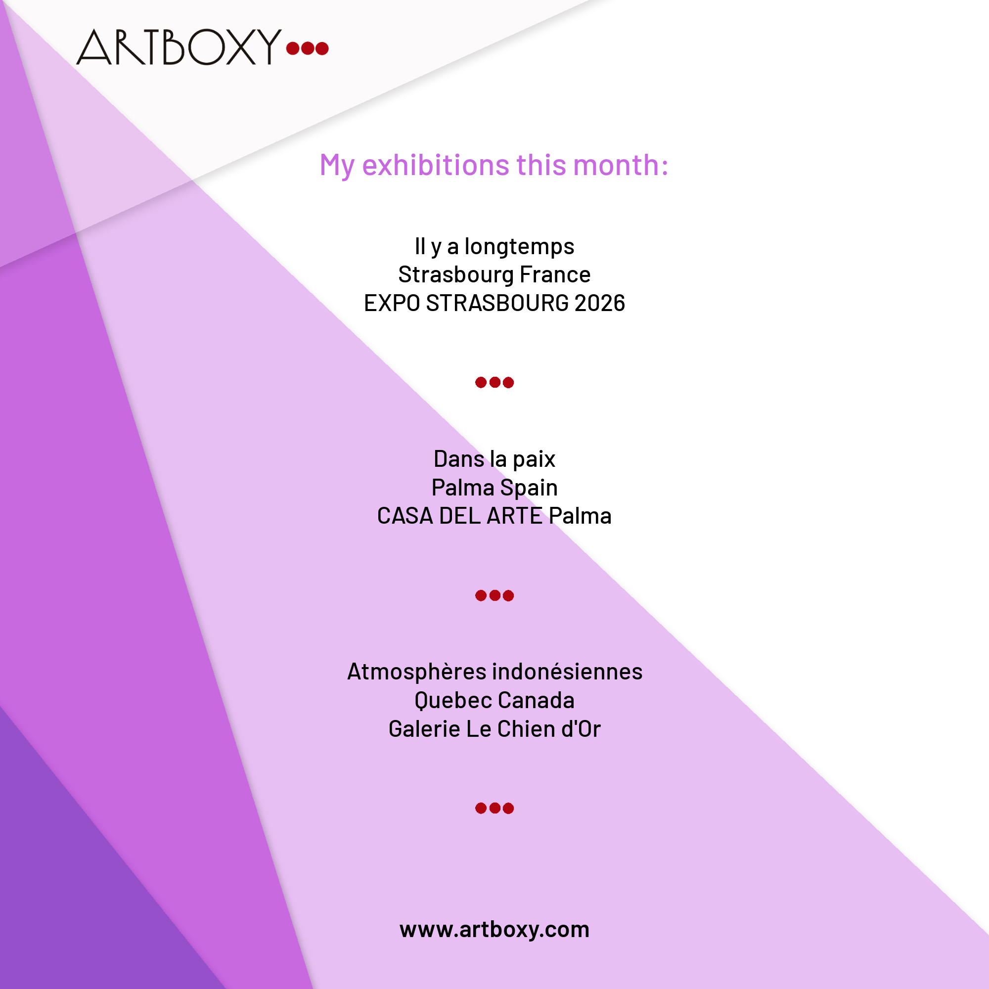 Casa del Arte Palma Galerie Le Chien d'Or Québec Expo art3f 2026 Strasbourg